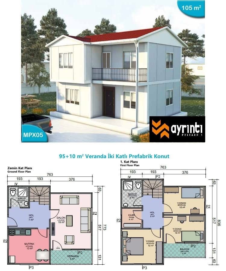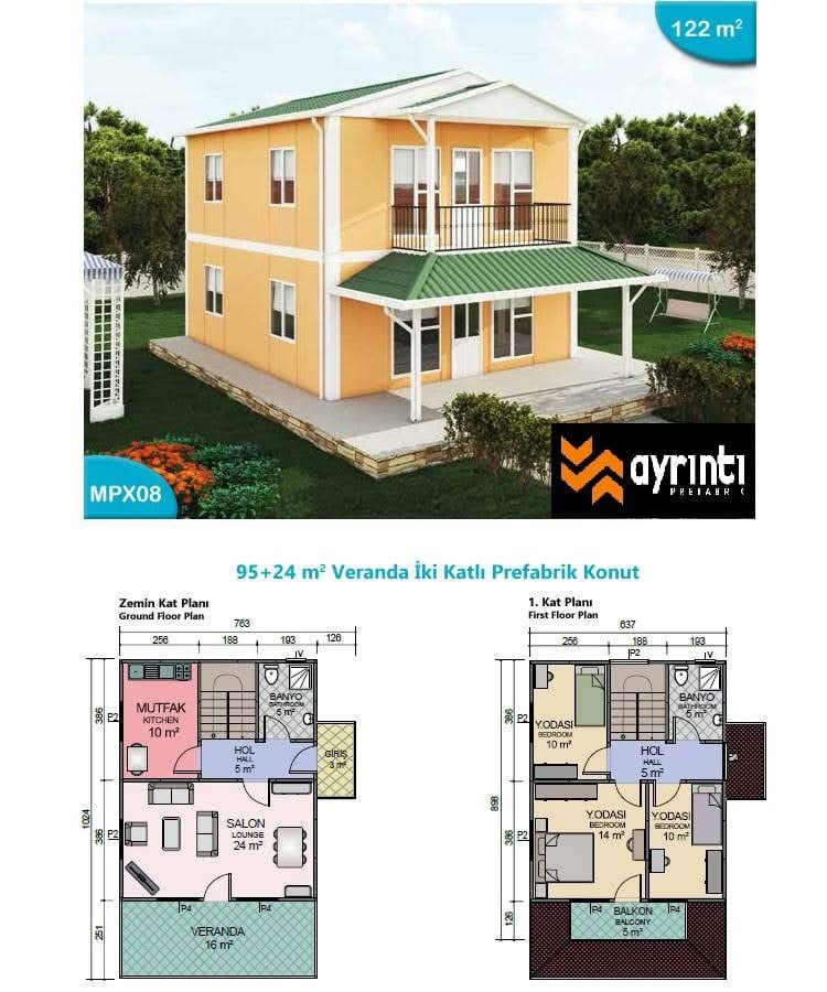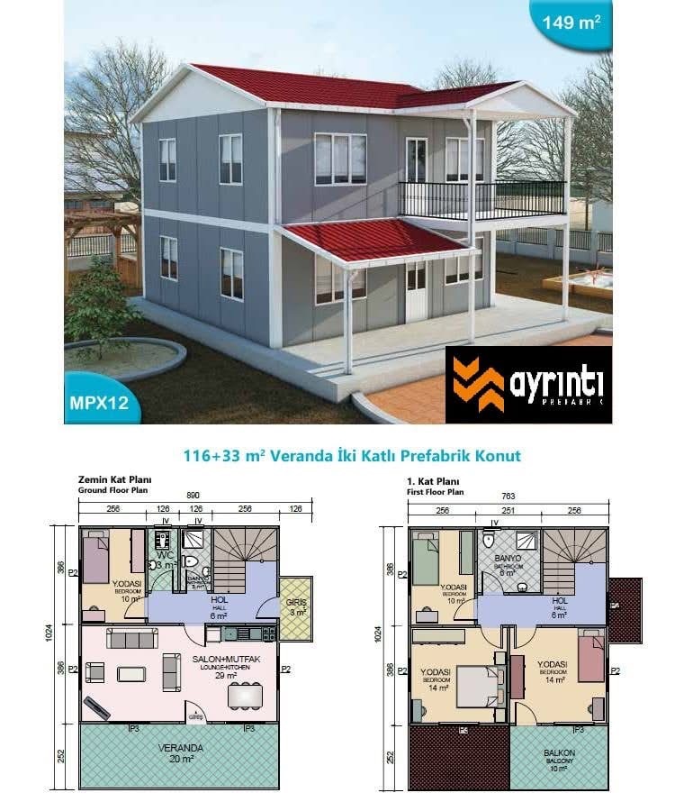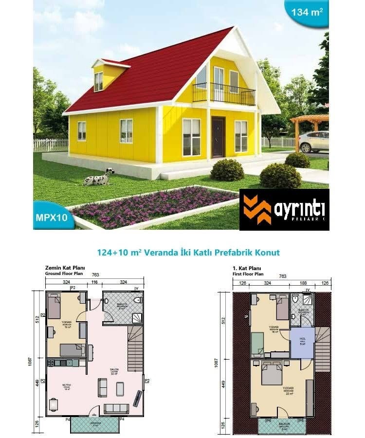 Tek katlı ve çok katlı prefabrik konutlar,